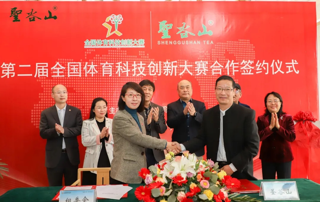 第二屆全國體育科技創(chuàng)新大賽首個贊助企業(yè)圣谷山茶場簽約儀式今天上午在美麗的日照圣谷山茶博園成功舉辦。