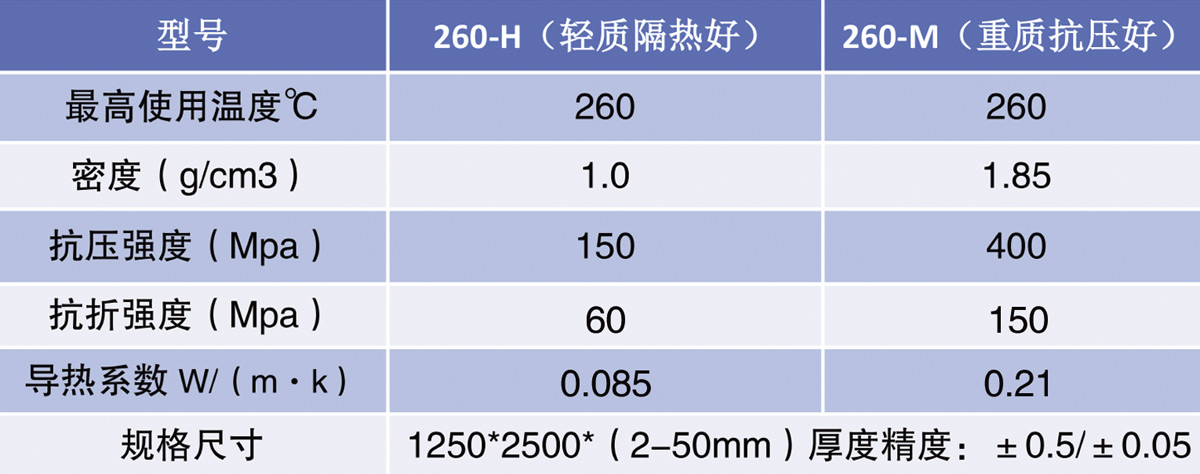 在耐熱性需要達(dá)到260℃以?xún)?nèi)的條件下使用的工業(yè)設(shè)備隔熱材料;